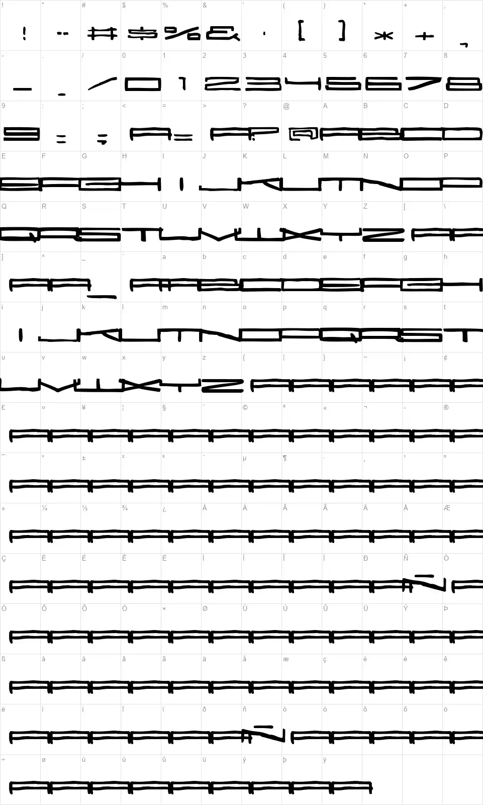 25000font character map