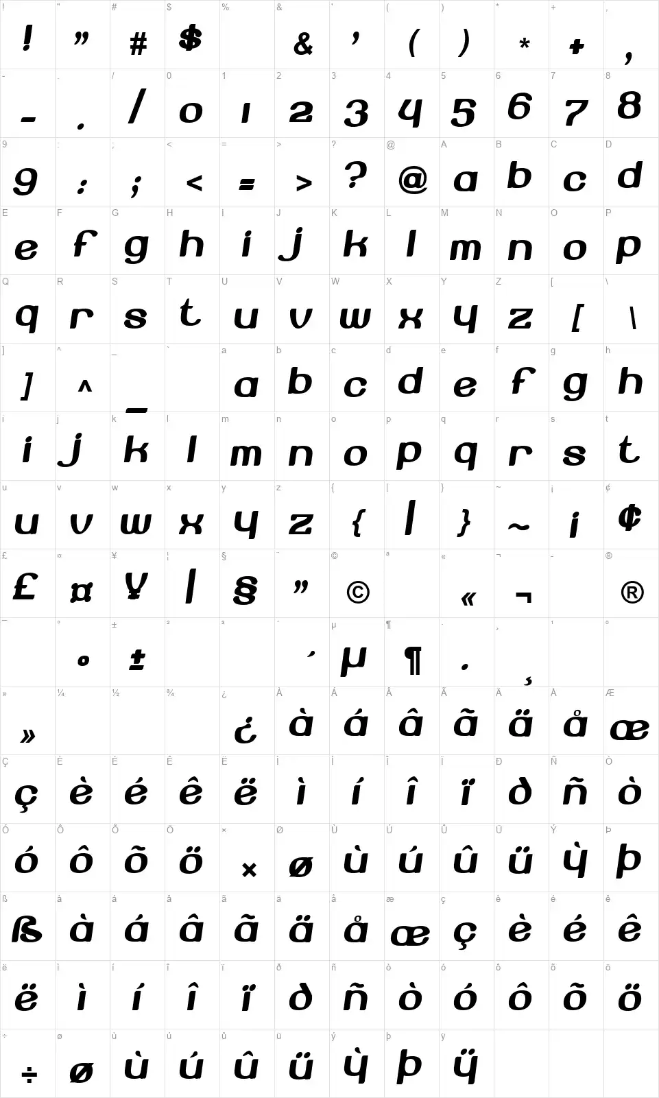 - Mapa znaków