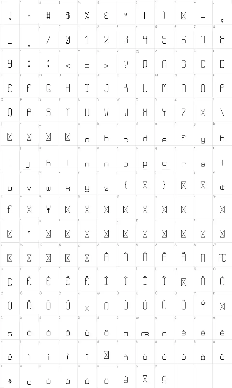 CC Robofont character map