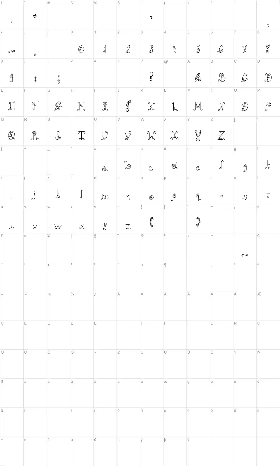 PC-GothicScrollfont character map
