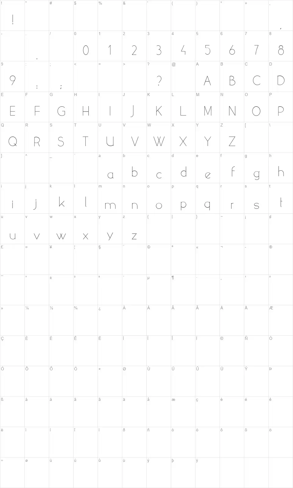 Yellow Peasfont character map